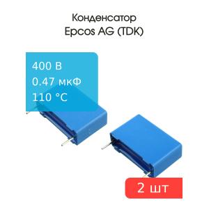 Конденсатор 0.47мкФ 63В vdc / 40Vac 10% (упаковка 2шт) Epcos B32529C0474K000 К73-17 имп110 p120 p110 p
