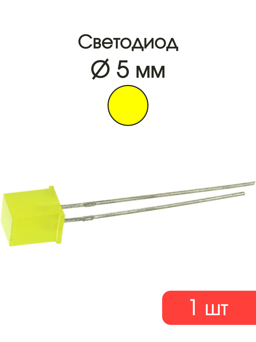 Светодиод квадратный, 5мм, цвет желтый