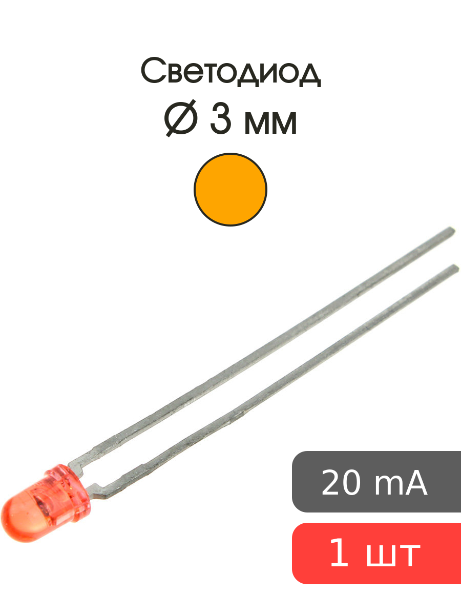 Светодиод оранжевый, яркий, размер линзы 3мм.