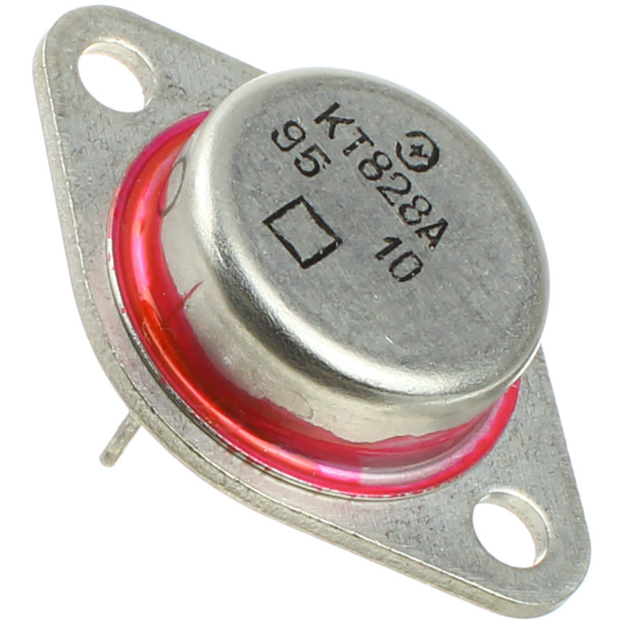 Транзисторы 2Т828А кремниевые мезапланарные структуры n-p-n высоковольтные, импульсные. Предназначены для применения в источниках вторичного электропитания, высоковольтных переключающих устройствах. Используются для работы в узлах и блоках электронной аппаратуры специального назначения. Выпускаются в металлическом корпусе со стеклянными изоляторами и жесткими выводами. Маркируются цифро-буквенным кодом на корпусе транзистора. Тип корпуса: КТ-9 (TO-3). Масса транзистора не более 20,0 г. Климатическое УХЛ» и «В». Категория качества: «ВП». Технические условия: - приемка «5» - аА0.339.120ТУ.