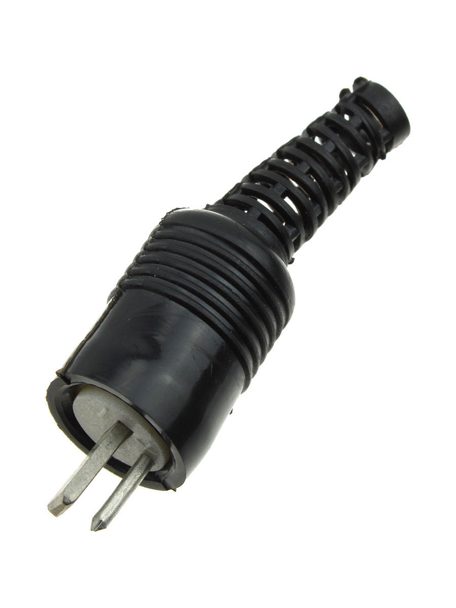 Штекер акустики точка-тире на провод черного цвета.