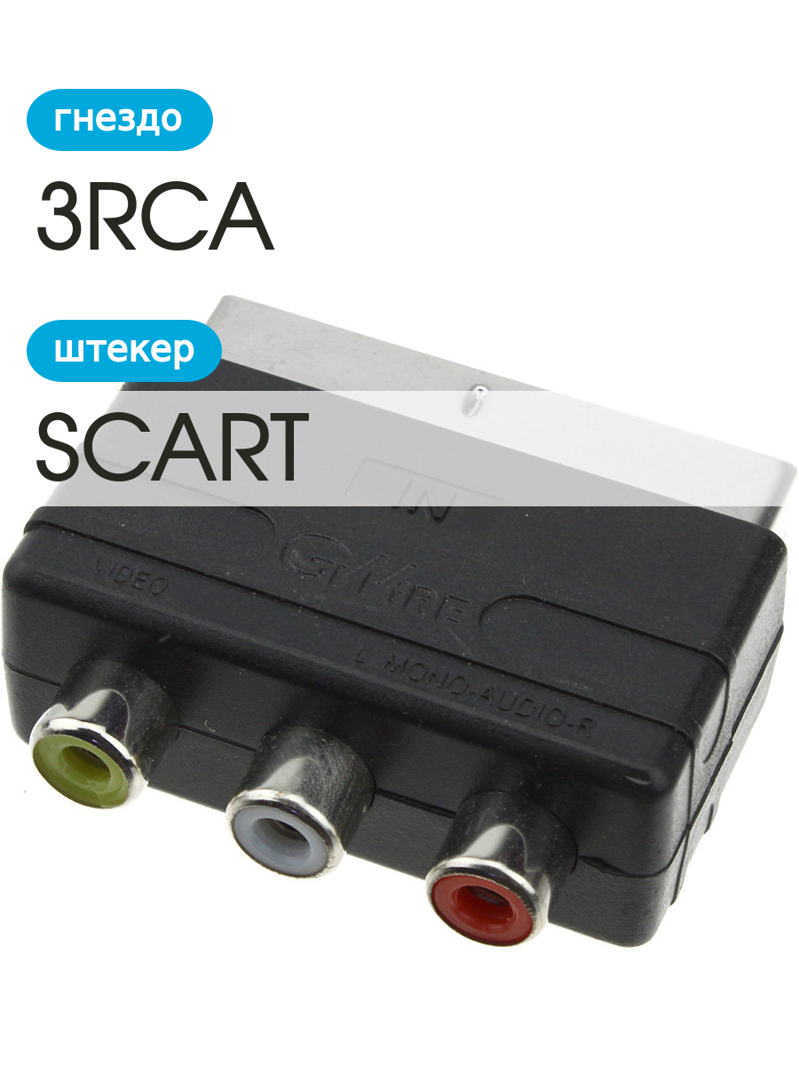 Переходник для подключения аудио и видео сигналов в телевизорах с разъемом Scart проводами с "тюльпанами".