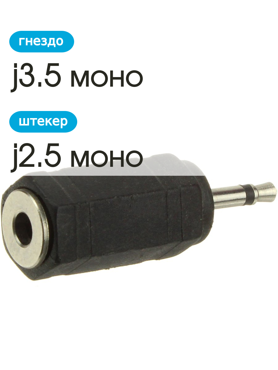 Переходник J2.5-J3.5(G) моно. Для подключения микрофонов и звуковоспроизводящих устройств.