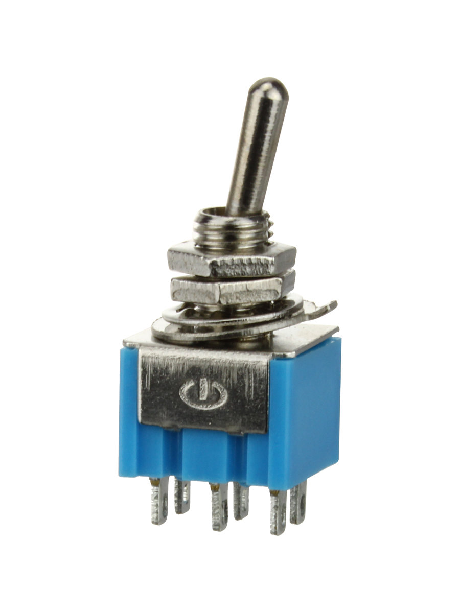 Тумблер MTS-202 предназначен для коммутации злектрических цепей в различных устройствах. Сила тока при рабочем напряжении 220 В составляет 3 А.Соответственно 6 А при рабочем напряжении 125 В.Тумблер имеет среднюю точку и выполняет функцию переключения в двух направлениях. Конструкцией MTS-202 предусмотрены 2 группы контактов по 3 в каждой. Размер установочного отверстия 5.5 мм.