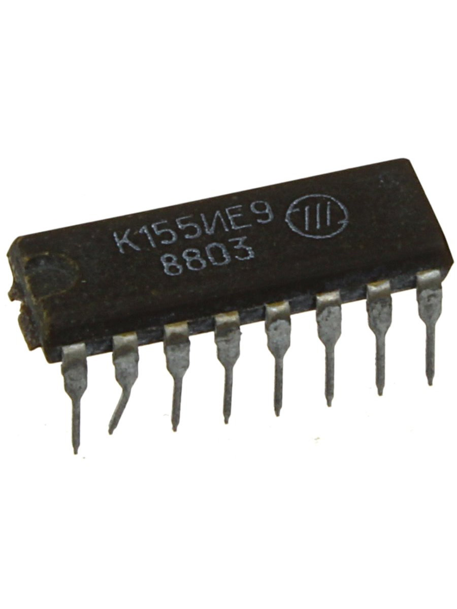 Микросхема представляет собой синхронный десятичный четырехразрядный счетчик. В ИС имеется возможность синхронной установки в произвольное состояние от 0 до 9, а также ассинхронный сброс и дешифрирующий счетный выход. В качестве запоминающего элемента используется JK-триггер с внутренней задержкой. Счетчик устанавливается в исходное состояние при наличии на контрольном входе L низкого уровня, при этом разрешена подача сигналов на входы JK-триггеров через входы предварительной установки D1-D4. Счет происходит при наличии на входах P,T,L высокого уровня. ИС устанавливается в нулевое состояние подачей на вход R напряжения низкого уровня. Корпус К155ИЕ9 типа 238.16-1.
