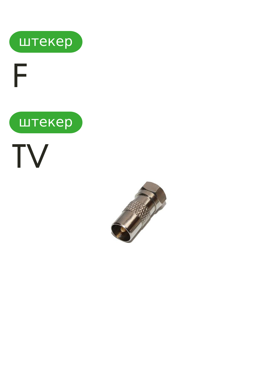 Переходник TV-F применяется для согласования и подсоединения высокочастотного коаксиального кабеля.
