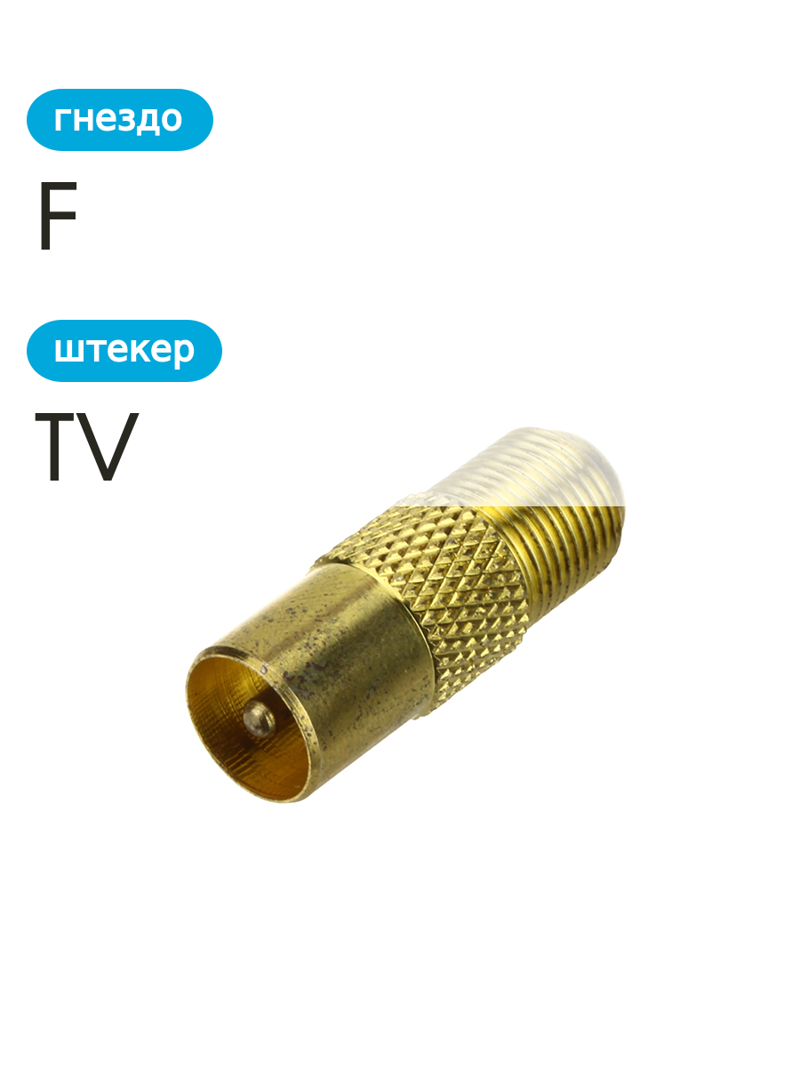 ПЕРЕХОД гнездо F - штекер TV предназначен для подключения эфирного, спутникового и кабельного телевидения с помощью радиочастотного кабеля волновым сопротивлением 50 или 75 Ом. С одной стороны располагается гнездо F-разъема, а с другой штекер ТВ-разъема. Изготовлен переход из сплава первичной меди (биметалл) с напылением технического золота, что гарантирует минимальный уровень потерь при прохождении сигнала. Переход соединяется с кабель методом накрутки F-коннектора, после соответствующей зачистки контактов радиочастотного кабеля, не требуя в ходе монтажа применения каких-либо специальных инструментов. Такой высокочастотный соединитель имеет ряд положительных преимуществ: