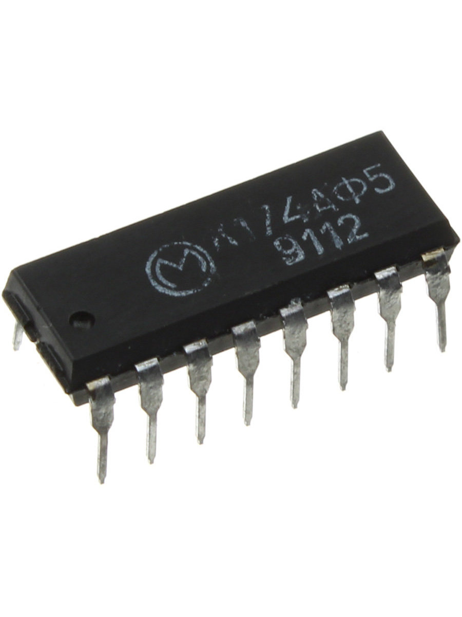 Микросхема К174АФ5 предназначена для формирования сигналов красного, зеленого и синего цветов из трех цветоразностных и яркостного сигналов, фиксации уровня «черного» в цветных телевизионных приемниках. Основное функциональное назначение матрица R-G-B (формирователь сигналов цветности). Содержит 251 интегральный элемент. Выпускаются в 16-выводном прямоугольном пластмассовом корпусе с выводами для монтажа в отверстия печатной платы. Маркировка микросхемы и схема: соединения электродов с выводами указывается на корпусе. Корпус типа 238.16-2, масса не более 1,5 г. Категория качества: «ОТК». Технические условия: бК0.348.584ТУ. Импортный аналог: TDA2530 фирмы Philips. Диапазон рабочих температур: -10°С... +70°С