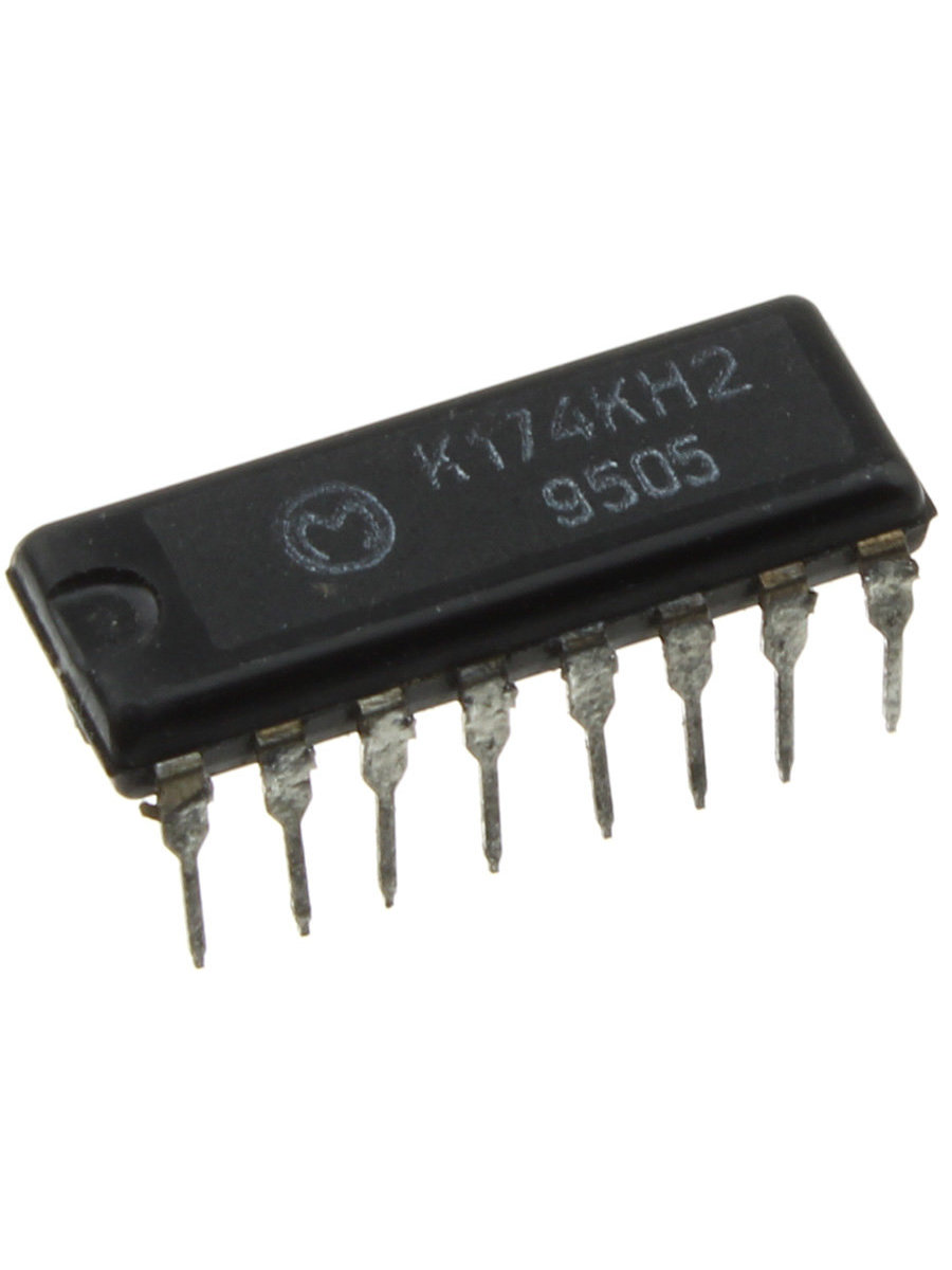 Микросхема К174КН2 представляет собой коммутатор напряжения на восемь выходов, управляемый по выходам и трехразрядным двоичным кодом по адресным входам управления и допускающий режим кольцевого переключения каналов последовательностью импульсов, подаваемых на управляющий вход.