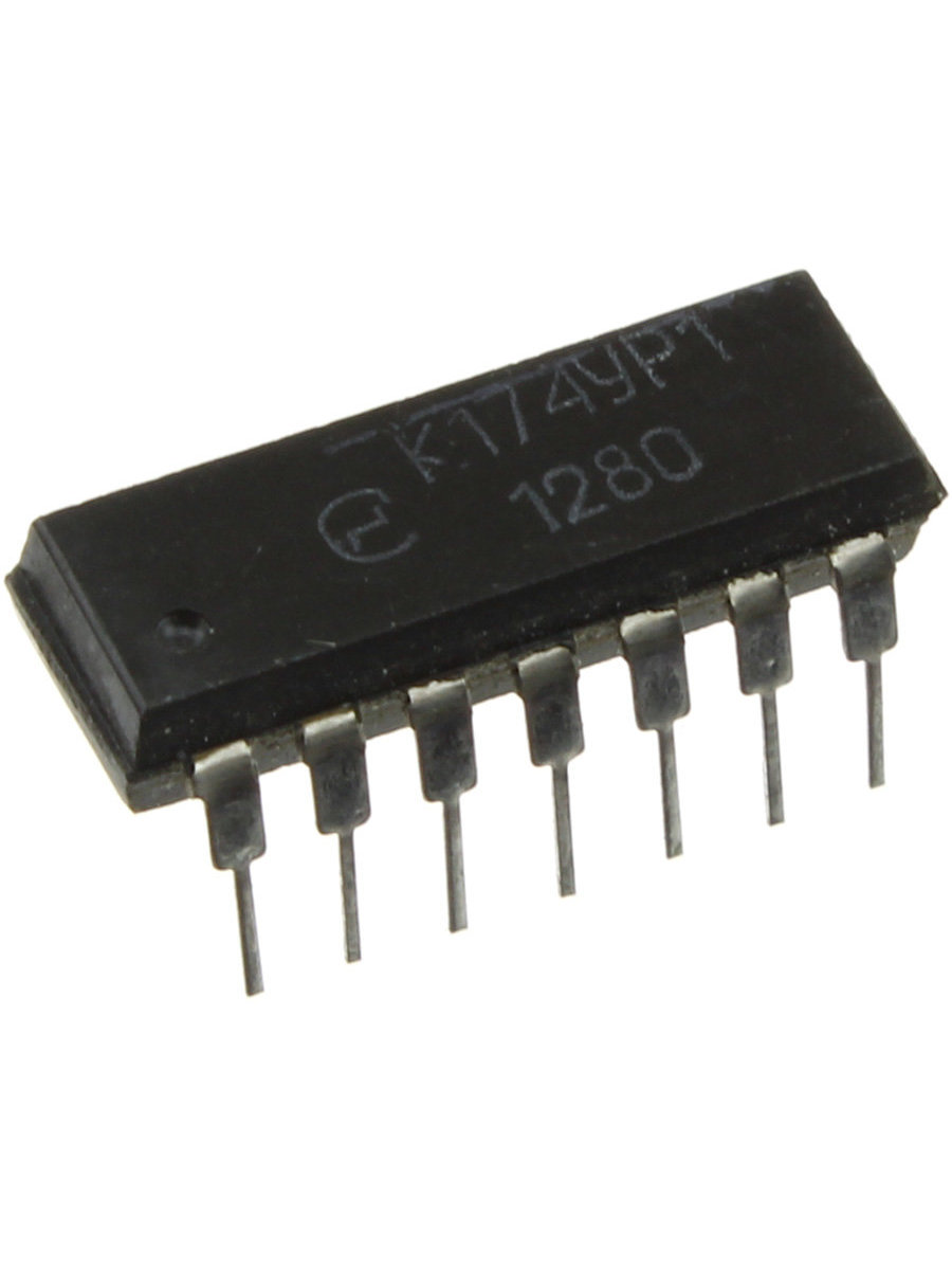 интегральный элемент. Корпус К174УР1 типа 201.14-1, К174УР1М — типа 201.14-8, масса не более 1,2 г.