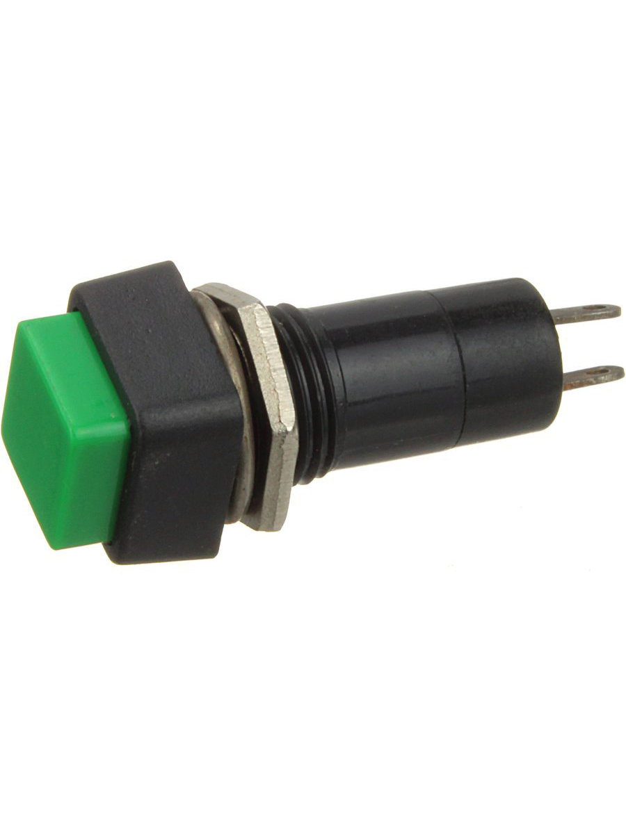 Кнопка 10мм квадратная зеленый без фиксации гайка