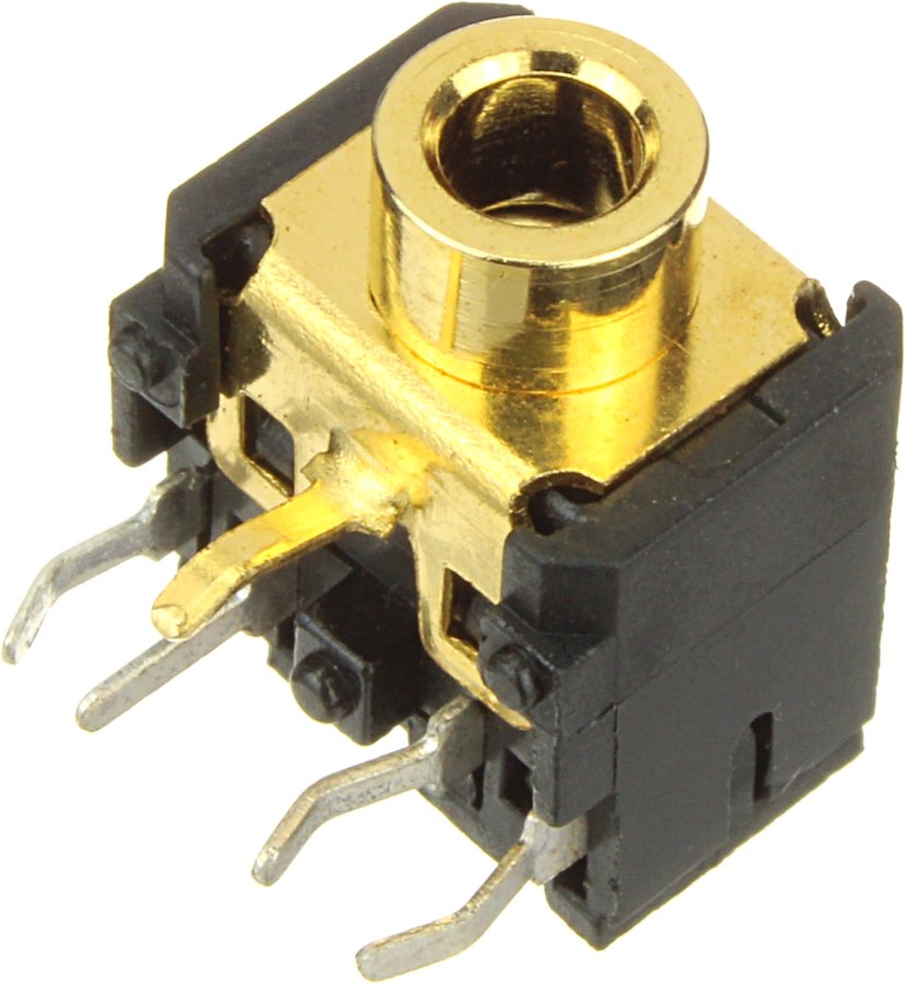 Разъем гнездо J3.5 на плату, метал золотого цвета, пластмасса черного цвета, 5PIN.
