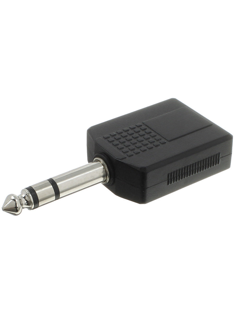 ПЕРЕХОДНИК штекер 6.3мм стерео - 2 гнезда 6.3мм стерео (металл), предназначен для передачи аналогового стерео аудиосигнала идущего от кабеля на аудиооборудование.
