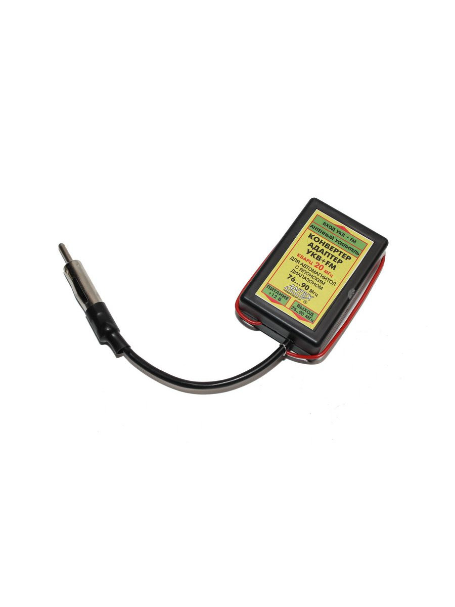 штекер антенны вставьте в гнездо антенны конвертера, а штекер конвертера в гнездо антенны автомагнитолы, затем присоедините провод питания конвертера к цепи питания магнитолы +12 В. Включите магнитолу и настройте на радиостанции УКВ ЧМ и FM диапозонов.