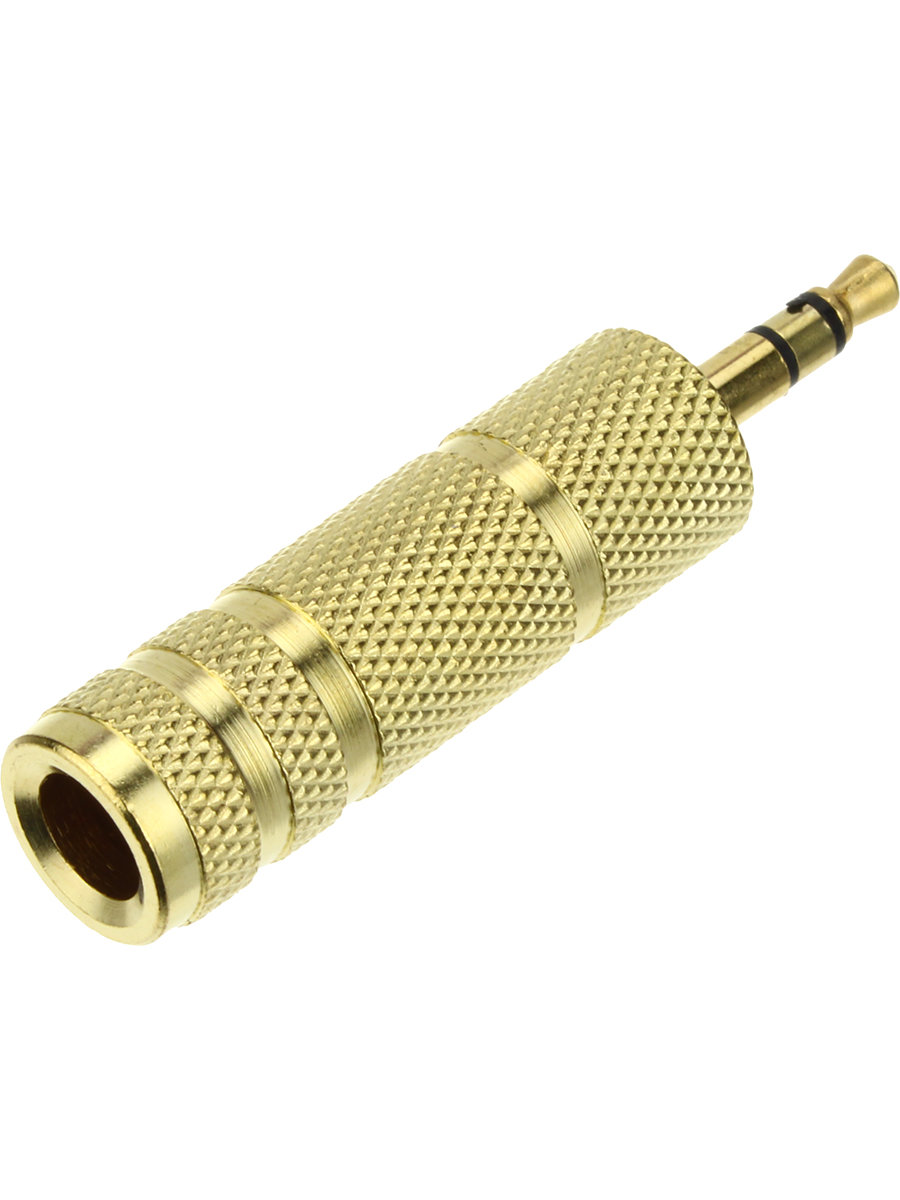 Переходник J3.5-J6.3(G) gold metal стерео. Для подключения звуковоспроизводящей аппаратуры.
