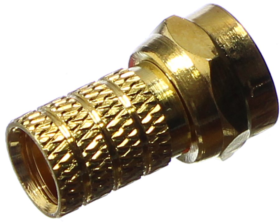 РАЗЪЕМ F-разъем RG-6 GOLD предназначен для соединения коаксиального кабеля волновым сопротивлением 75 Ом с телевизионным и видеооборудованием (ресиверы, телевизоры, всевозможная видеоаппаратура и т.д.). Разъем данного вида не имеет непосредственного штекера, поэтому роль штекера выполняет центральная жила кабеля, что позволяет избежать дополнительных потерь сигнала. F-коннектор изготовлен из сплава меди (биметалл) с напылением технического золота. Разъем устанавливается на кабель методом накрутки гильзы разъема на внешнюю оболочку кабеля, после соответствующей зачистки контактов, и не требует применения каких-либо специальных инструментов. F-штекер выступает в роли своеобразного экрана за счет накручивания на оплетку кабеля для выполнения роли электрического контакта. Такой высокочастотный соединитель имеет ряд положительных преимуществ: