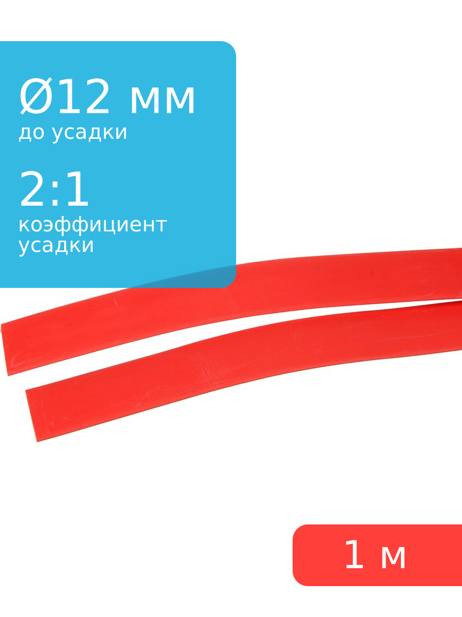 Трубка термоусадочная d12.0мм L1000мм красная, 1 метр, 2:1