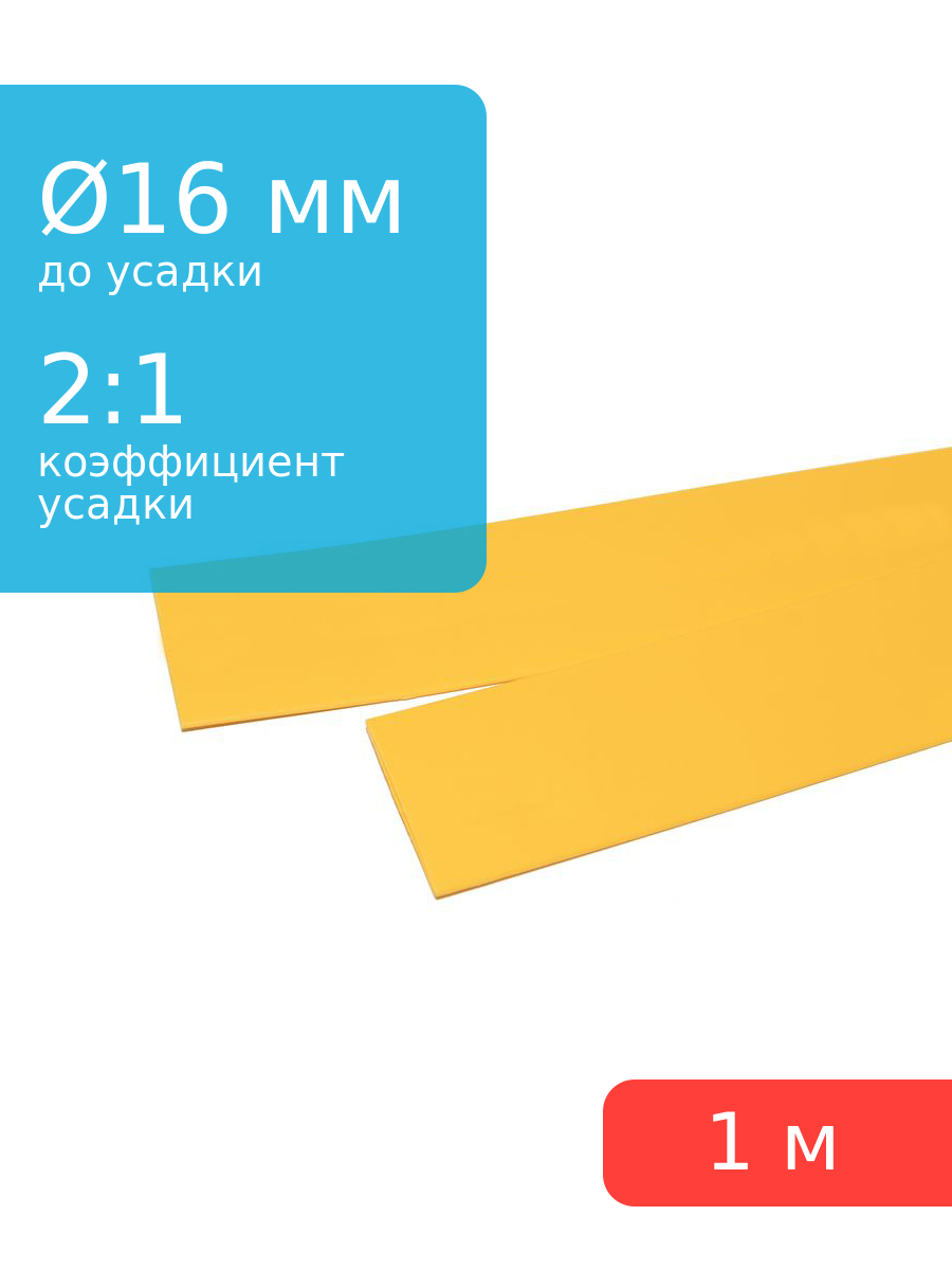 Трубка термоусадочная 16.0*1000 желтая, 1 метр