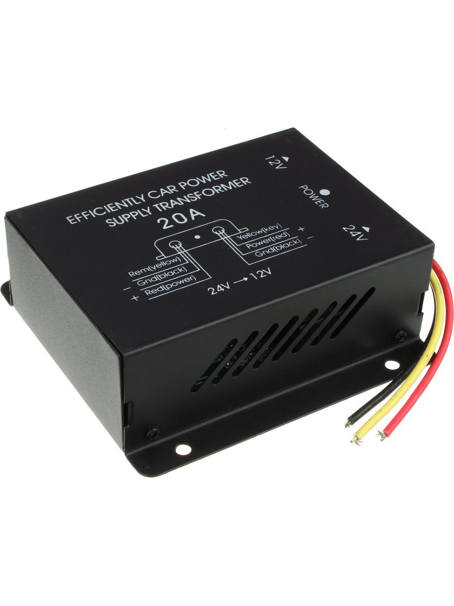 ПРЕОБРАЗУЕТ НАПРЯЖЕНИЕ 24 Вольт БОРОТОВОЙ СЕТИ грузовиков и автобусов в СТАНДАРТНОЕ НАПРЯЖЕНИЕ 12 Вольт. Защита от перегрузки и перегрева, КЗ, низкого входного напряжения.