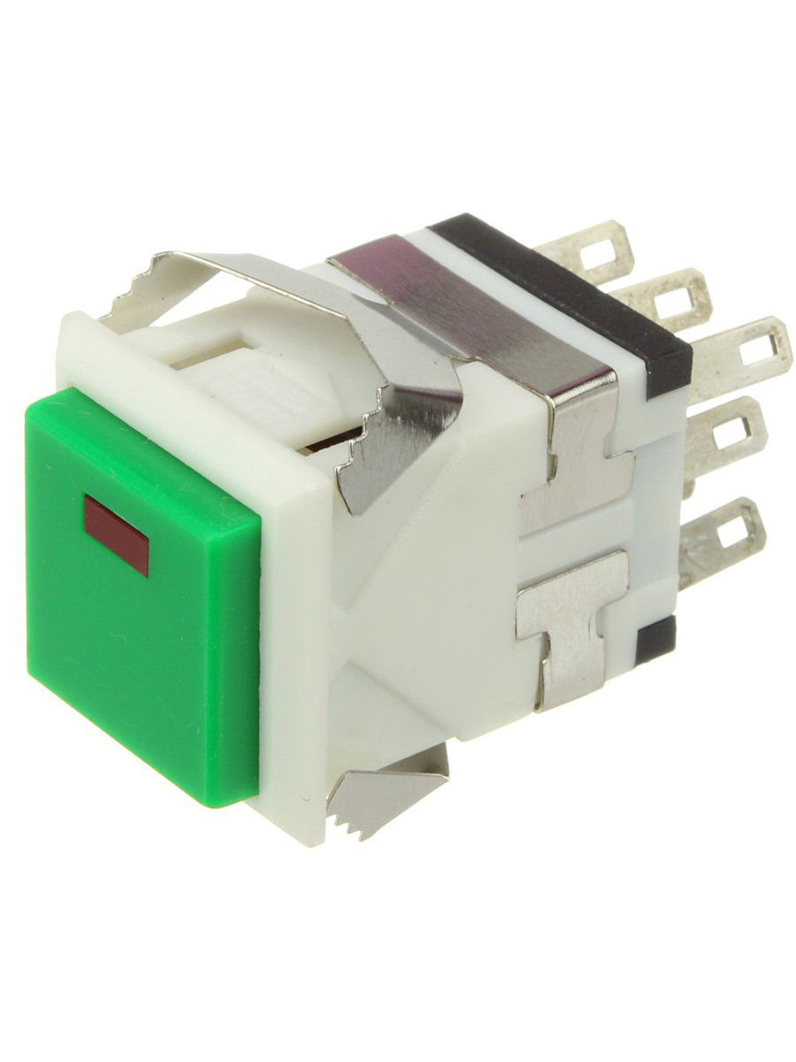 Кнопка 18мм квадратная Зел/белый без фиксации 8PIN подсветка