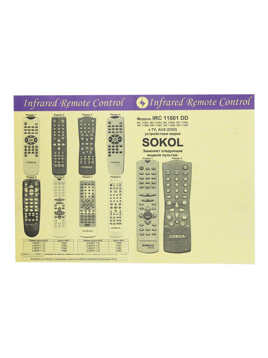 Пульт к IRC11501DD Sokol TV/AUX/DVD