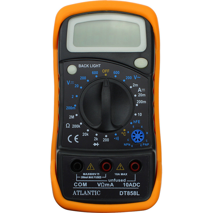 Разрядность шкалы: 2000 отсчетов. Постоянное напряжение: 200м/2/20/200 В: ±0.5%, 1000 В: ±0.8%. Переменное напряжение: 200/750 В: ±1.2%. Постоянный ток: 2/20 мА: ±1.0%, 200 мА: ±1.5%. 10 А: ±3%. Сопротивление: 200/2K/20K/200KOm: ±0.8%, 2MOm: ±1.0%. Температура: -20°С - 1000°С. Коэффициент усиления транзисторов по току: 1 - 1000. Звуковая прозвонка соединений. Диодный тест. Удержание показаний DATA HOLD. Синяя подсветка.