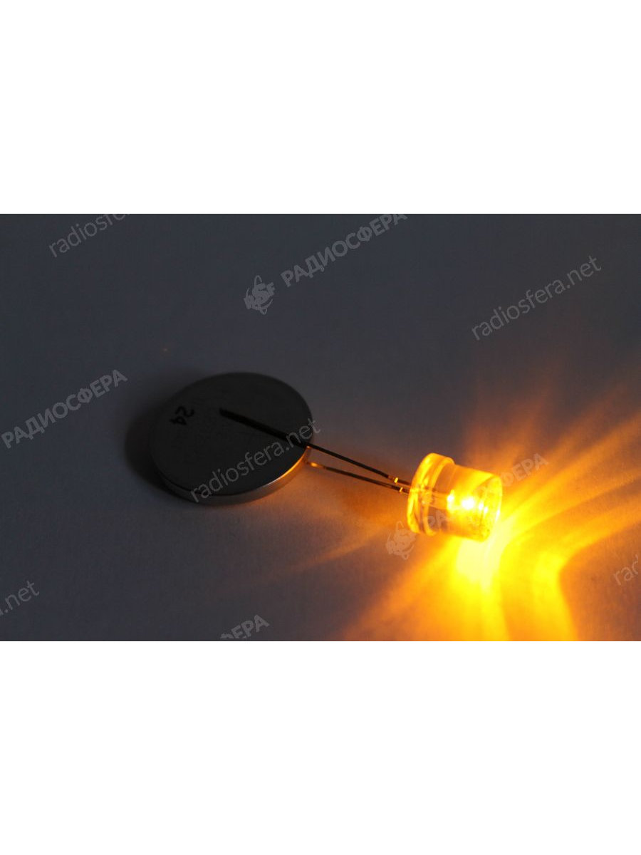 Светодиод 8мм, цвет желтый, линза
