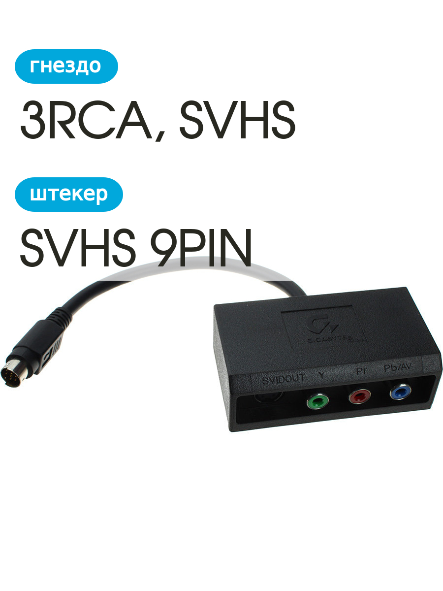 Переходник 3RCA(G)(RGB)-SVHS(G)-SVHS 9PIN предназначен для передачи S-video,компонентного и композитного видеосигнала