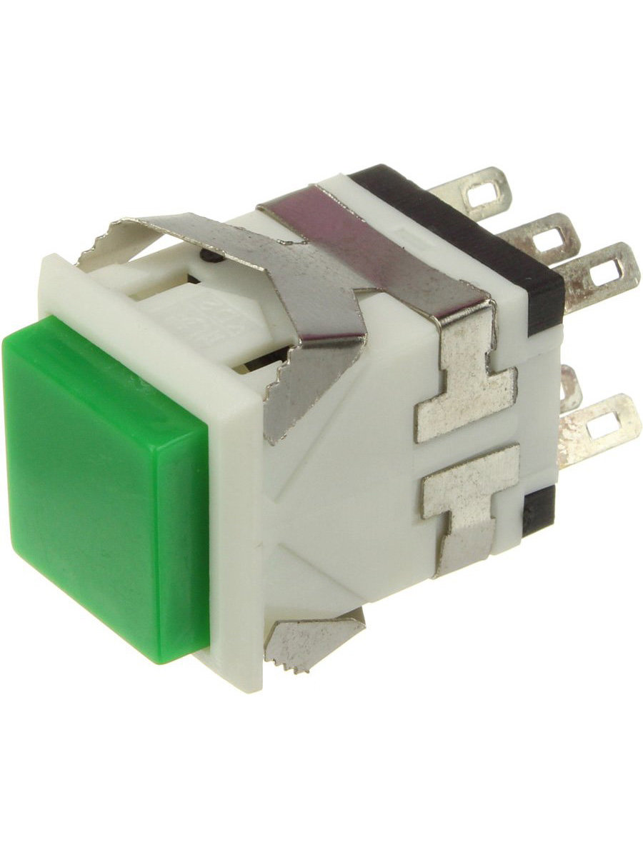 Кнопка 18мм квадратная Зел/белый без фиксации 6PIN