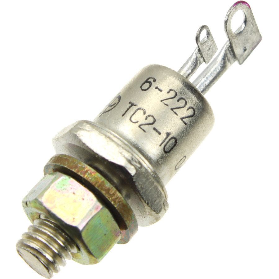 Симметричные тиристоры (симисторы) ТС 2-10 производятся на основе кремниевой пятислойной структуры п-р-п-р-п и используется в таких работах, как: регулирование температуры для бытовых электроприборов, светорегулирование ламп накаливания, для аппаратов импульсной сварки, стабилизатция тока и напряжения, коммутирование нагрузок, для мощных ультразвуковых генераторов и другой коммутационной и регулирующей аппаратуры.