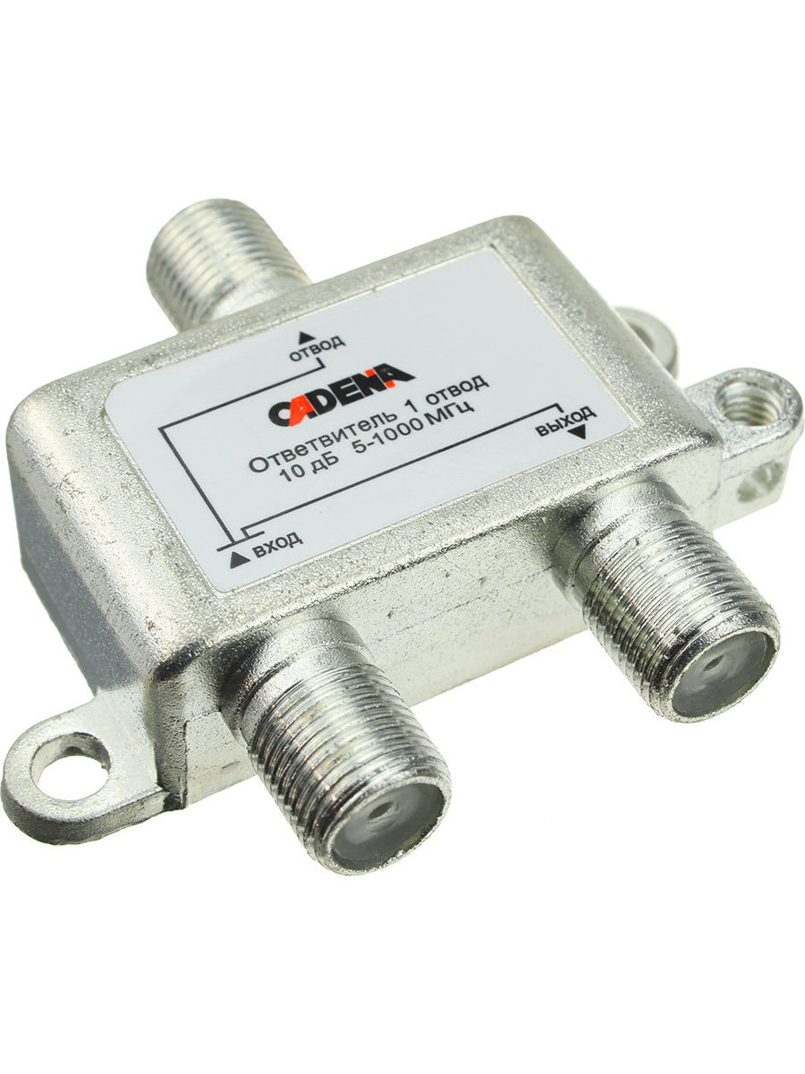 Телевизионный ответвитель представляет собой устройство, необходимое для отвода телевизионного сигнала от магистральной линии передач. Ответвитель используют в тех случаях, когда телеприемники находятся на большом удалении друг от друга. При этом сигнал распределяется по внутридомовой схеме разводки. Данный ответвитель имеет 1 отвод мощностью 10 дБ. Подключается такой ответвитель с помощью стандартных F-разъемов. Ответвитель имеет один вход для магистрального кабеля, один абонентский выход (10 дБ) и один выход для магистрального кабеля. Ответвители иногда называют проходными делителями, т.к. ответвляется лишь небольшая доля сигнала, а основной сигнал проходит дальше.