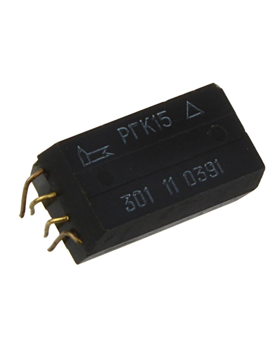 Реле электромагнитные герконовые РГК15 – неполяризованные одностабильные слаботочные реле, коммутируют цепи постоянного и переменного токов напряжением от 0,05В до 180В с номинальной нагрузкой по току от 5×10-6А до 0,25А и максимальной коммутируемой мощностью до 7,5Вт.