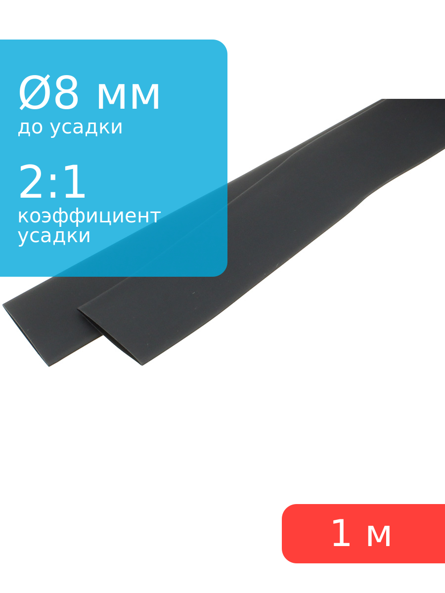 Трубка термоусадочная d8.0мм L1000мм черная, 1 метр, 2:1