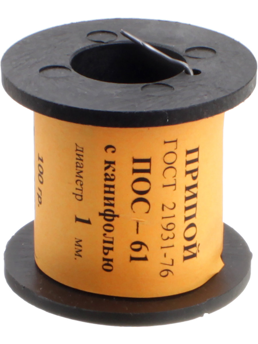 Припой ПОС-61 c канифолью применяется при лужении и пайке компонентов электро/радиоаппаратуры. печатных плат точных приборов с высоко-герметичными швами. а также используется тогда. когда при паянии нельзя перегревать детали. например при соединении очень тонких проводов.контактов.микросхем.