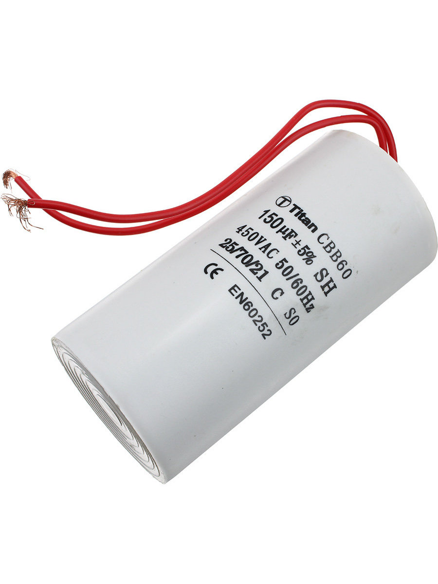 Конденсатор пусковой 150мкФ 450В 5% выводы провод