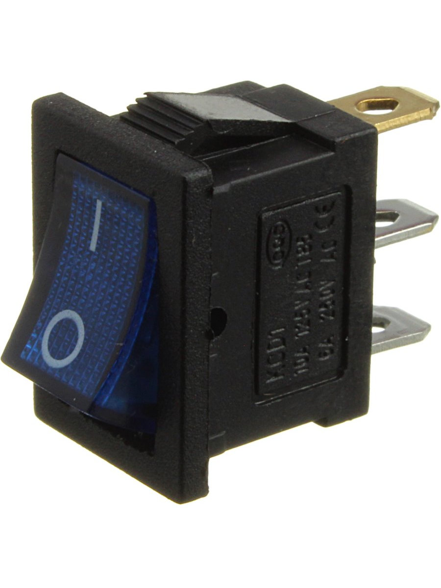 Выключатель 15Х20 мм 3 контакта 2 положения синий подсветка