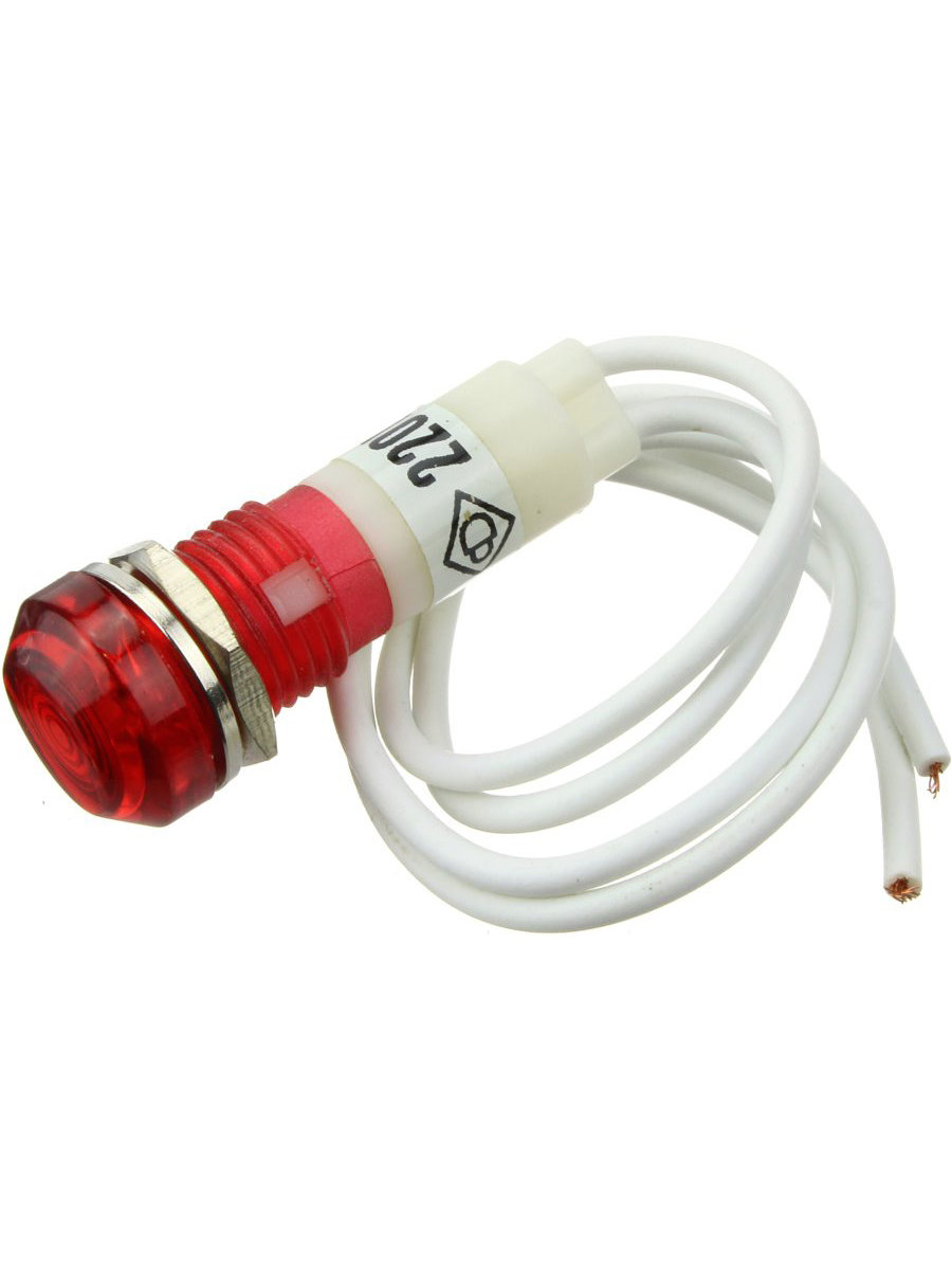 Лампа Неон 110/220 13мм круглая, цвет красный, с проводом гайк