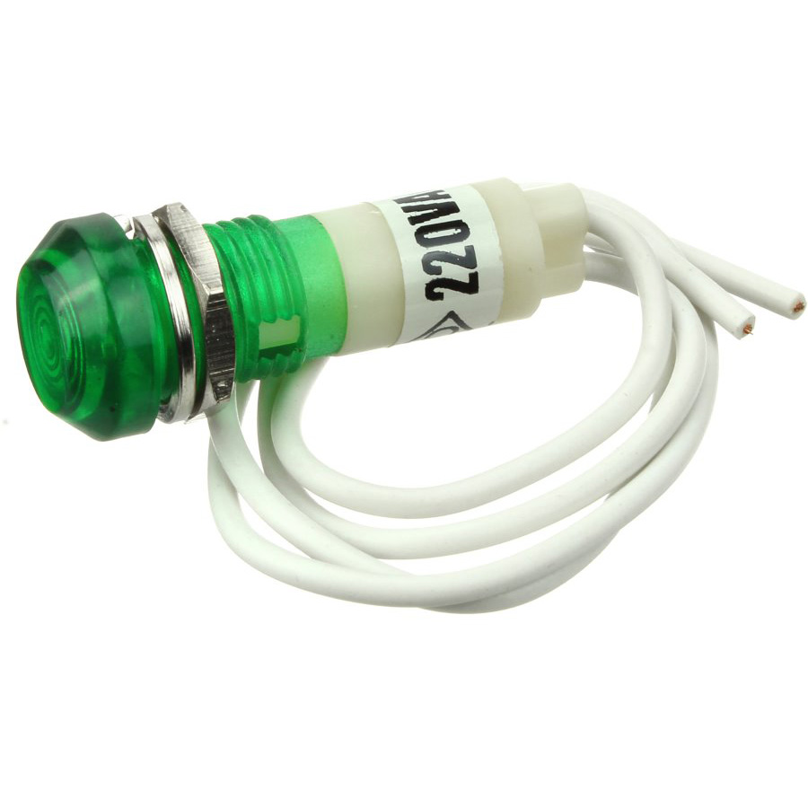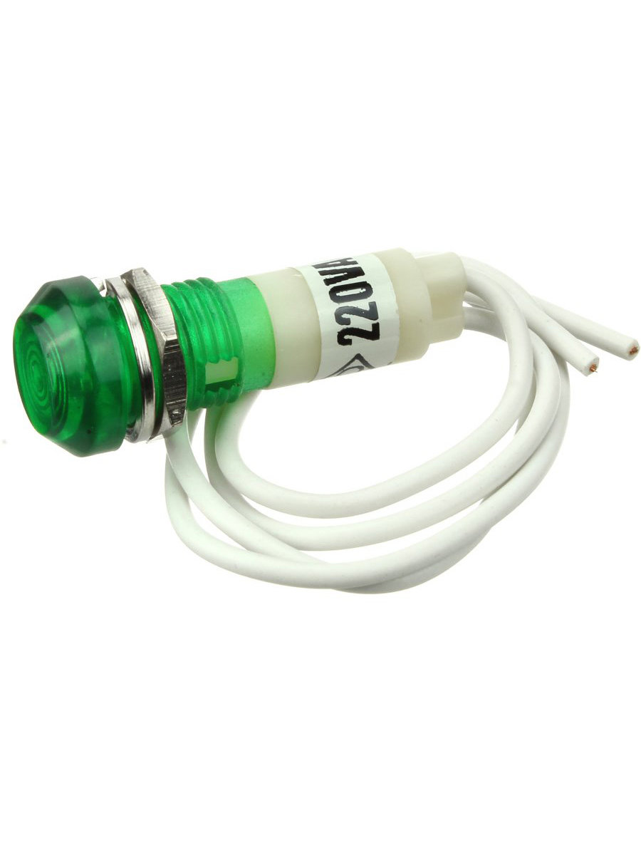 Лампа Неон 110/220 13мм круглая, цвет зеленый с проводом, с гайкой