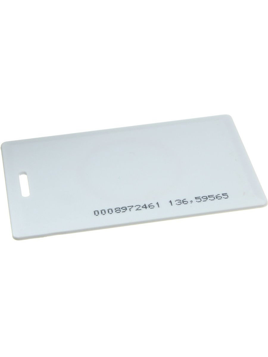 Стандартная Proximity карта EM-Marin с прорезью. Предназначена для использования совместно с устройствами контроля доступа в помещениях в качестве ключа доступа.
