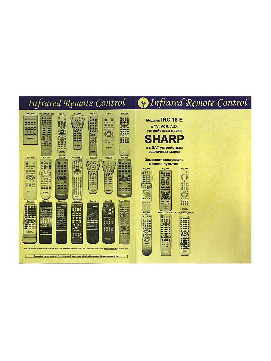 Данный программируемый пульт заменяет следующие оригинальные пульты к TV устройствам SHARP:
