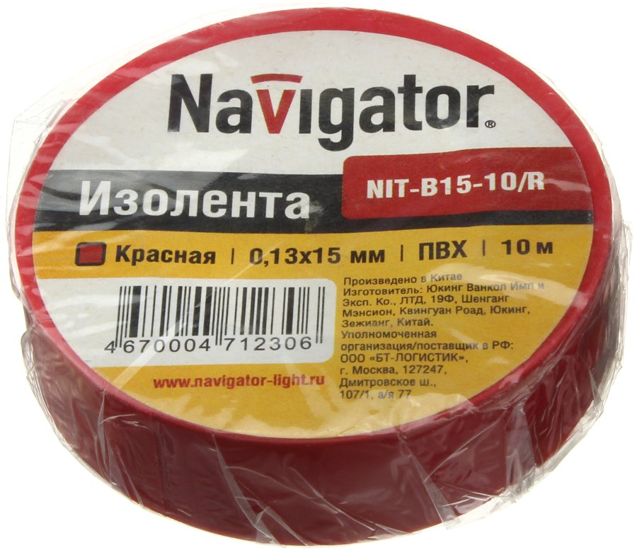 Изолента Красная Navigator 0.15*10м