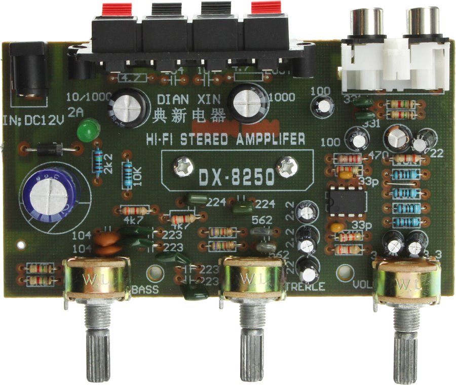 Усилитель НЧ 2*50 (ТА8250), 2RCA(G), 4 зажима, гнездо питания