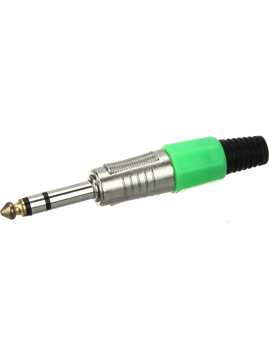 Разъем J6.3 стерео metal Зеленый-ПЛ-Никель-Голд