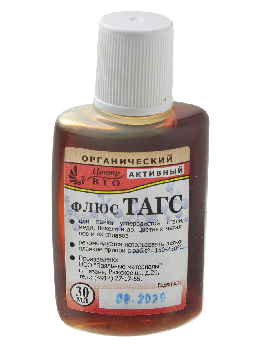 Редназначение: для пайки углеродистой стали, меди, никеля и их сплавов. При пайке печатных плат имеет остаточное сопротивление и требует обязательной промывки. Свойства: химически активный, температурный интервал 150-320°C. Требует удаления остатков флюса после пайки. Удобное дозирование, герметичная упаковка.