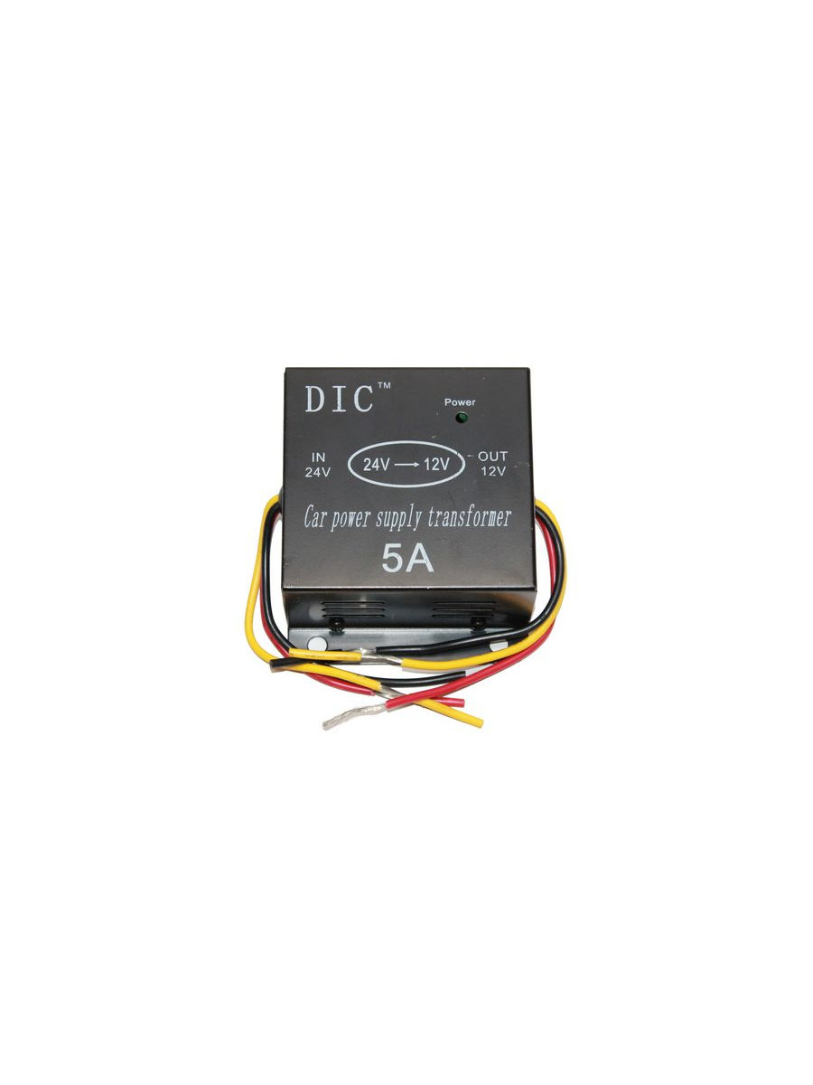 Понижает напряжение бортовой сети грузовых автомобилей с 24 Вольт до 12 Вольт с максимальным током нагрузки 5 Ампер