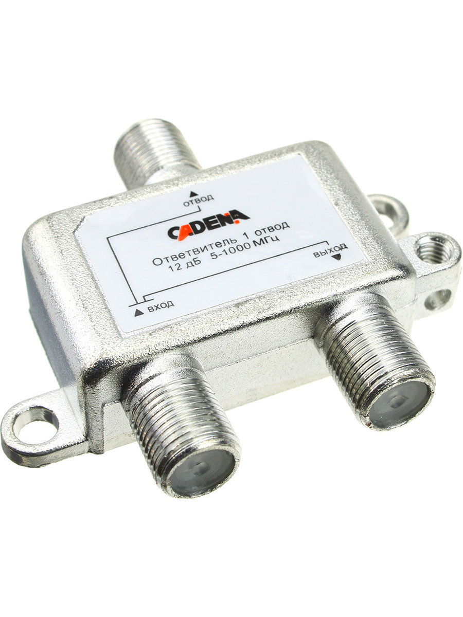 Телевизионный ответвитель представляет собой устройство, необходимое для отвода телевизионного сигнала от магистральной линии передач. Ответвитель используют в тех случаях, когда телеприемники находятся на большом удалении друг от друга. При этом сигнал распределяется по внутридомовой схеме разводки. Данный ответвитель имеет 1 отвод мощностью 12 дБ. Подключается такой ответвитель с помощью стандартных F-разъемов. Ответвитель имеет один вход для магистрального кабеля, один абонентский выход (12 дБ) и один выход для магистрального кабеля. Ответвители иногда называют проходными делителями, т.к. ответвляется лишь небольшая доля сигнала, а основной сигнал проходит дальше.