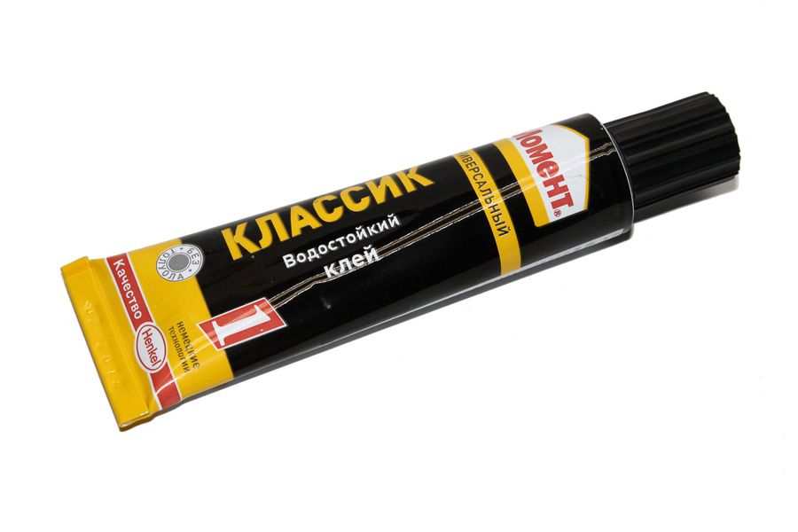 Универсальный контактный клей Момент. Идеально подходит для склеивания в различном сочетании дерева, металла, жесткого поливинилхлорида, кожи, резины, войлока, декоративно-слоистых пластиков, стекла, керамики, фарфора. He пригоден для склеивания посуды, контактирующей с пищей.