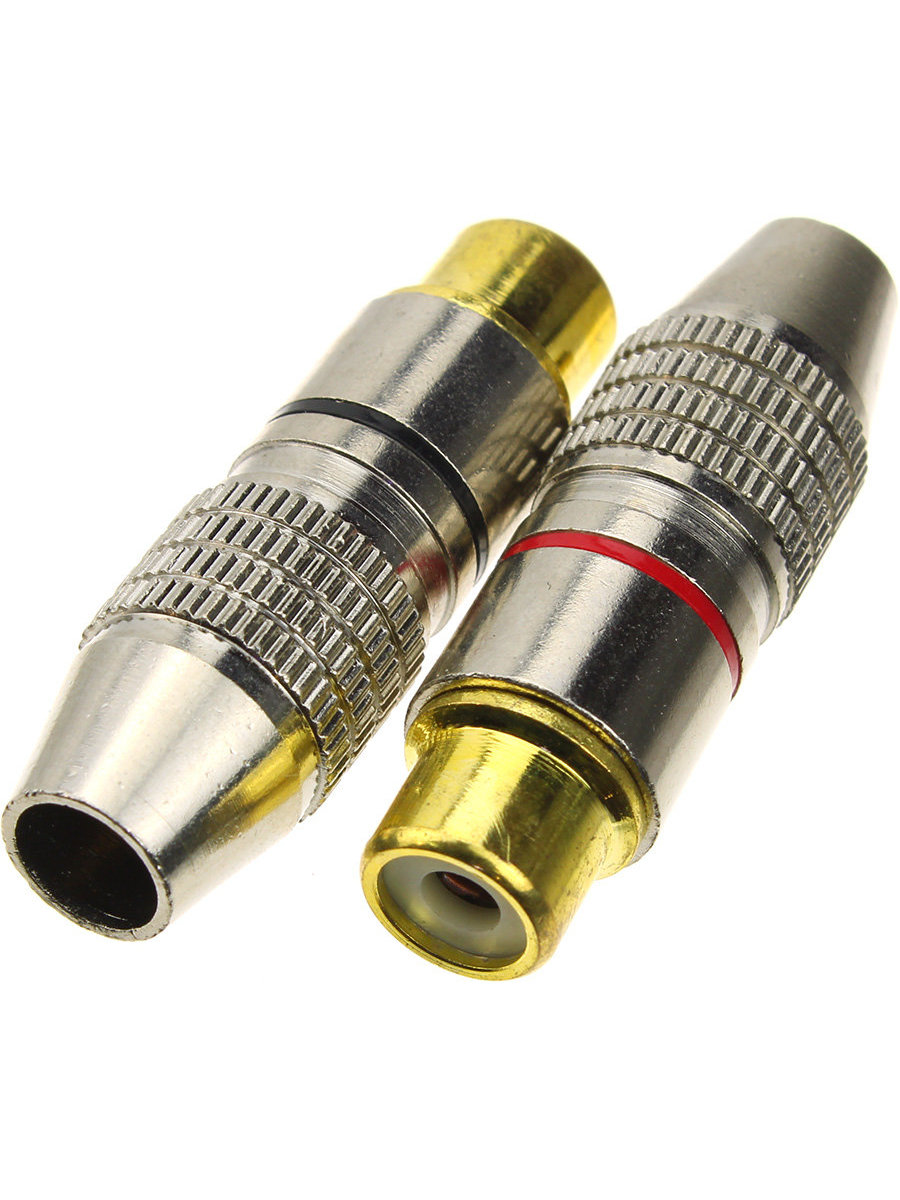 Разъем RCA гнездо металлический, размер 6мм, на провод.