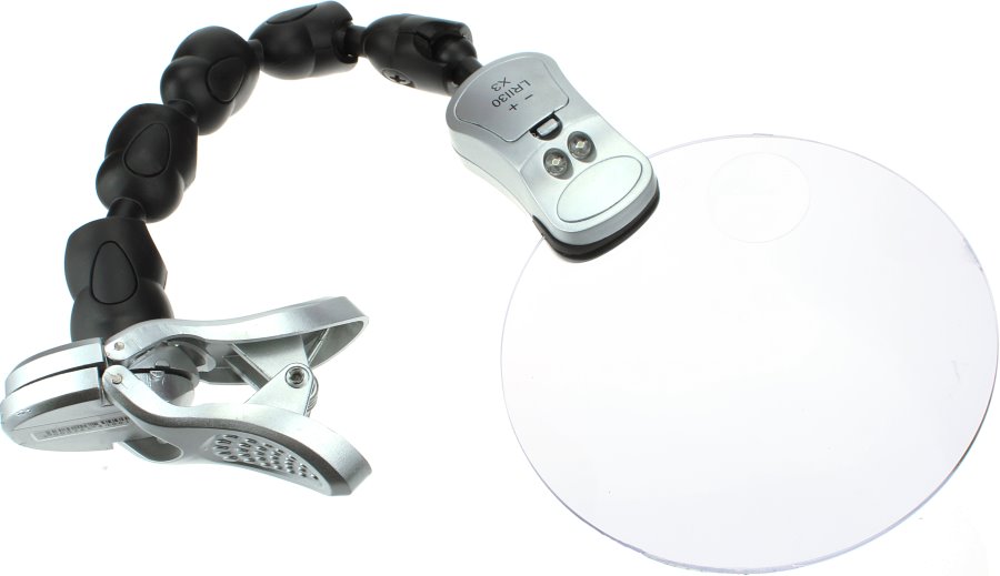 Лупа 110мм гибкая нога подсветка 2свд. прищепка