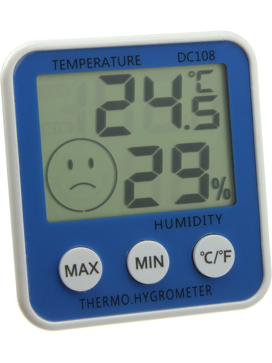 Цифровой комнатный термометр DC-108 предназначен для домашнего использования для измерения температуры и влажности в помещении. Отлично подходит для детской комнаты. На экране ЖК-дисплея большими жирными цифрами показываются данные о температуре, влажности в комнате